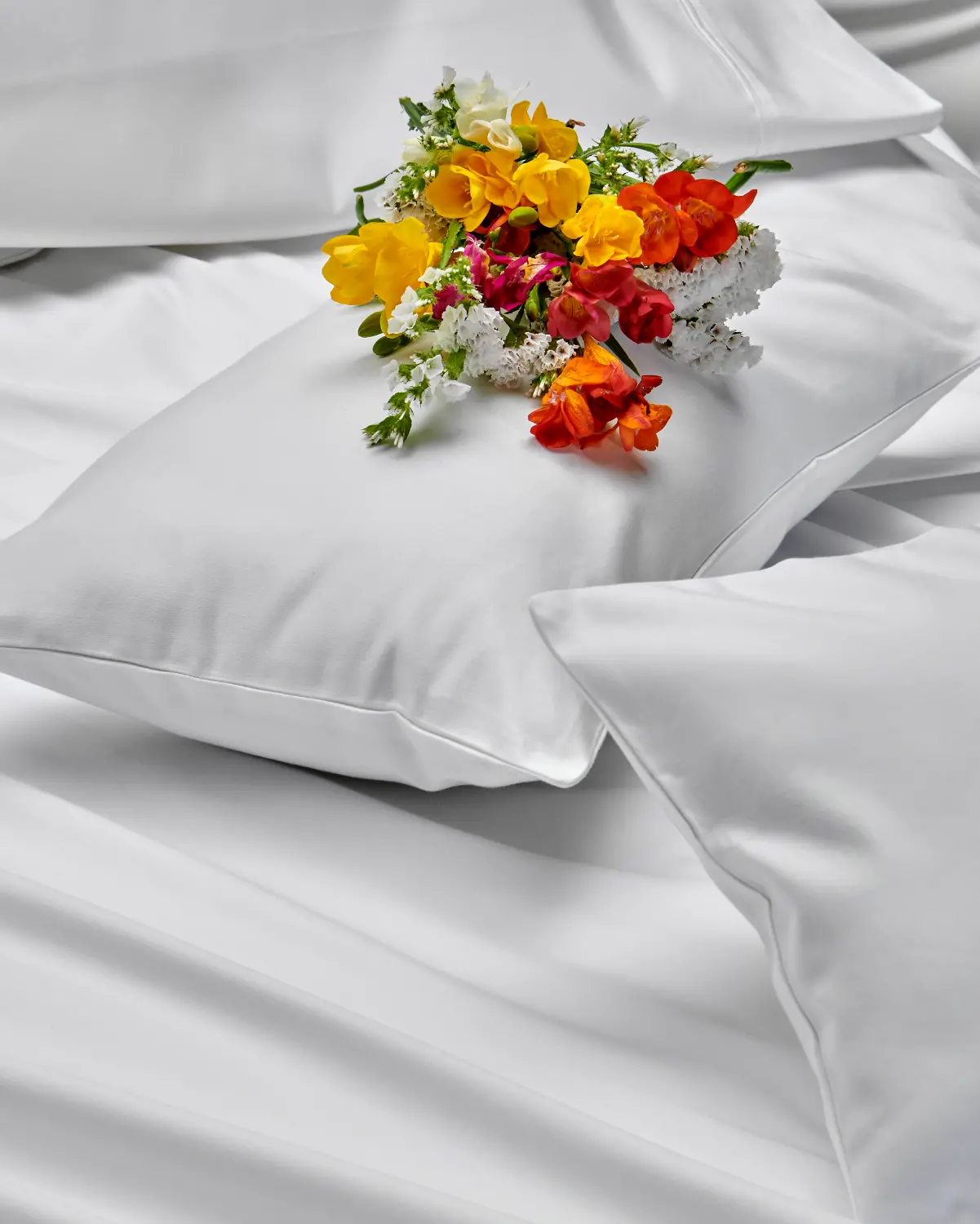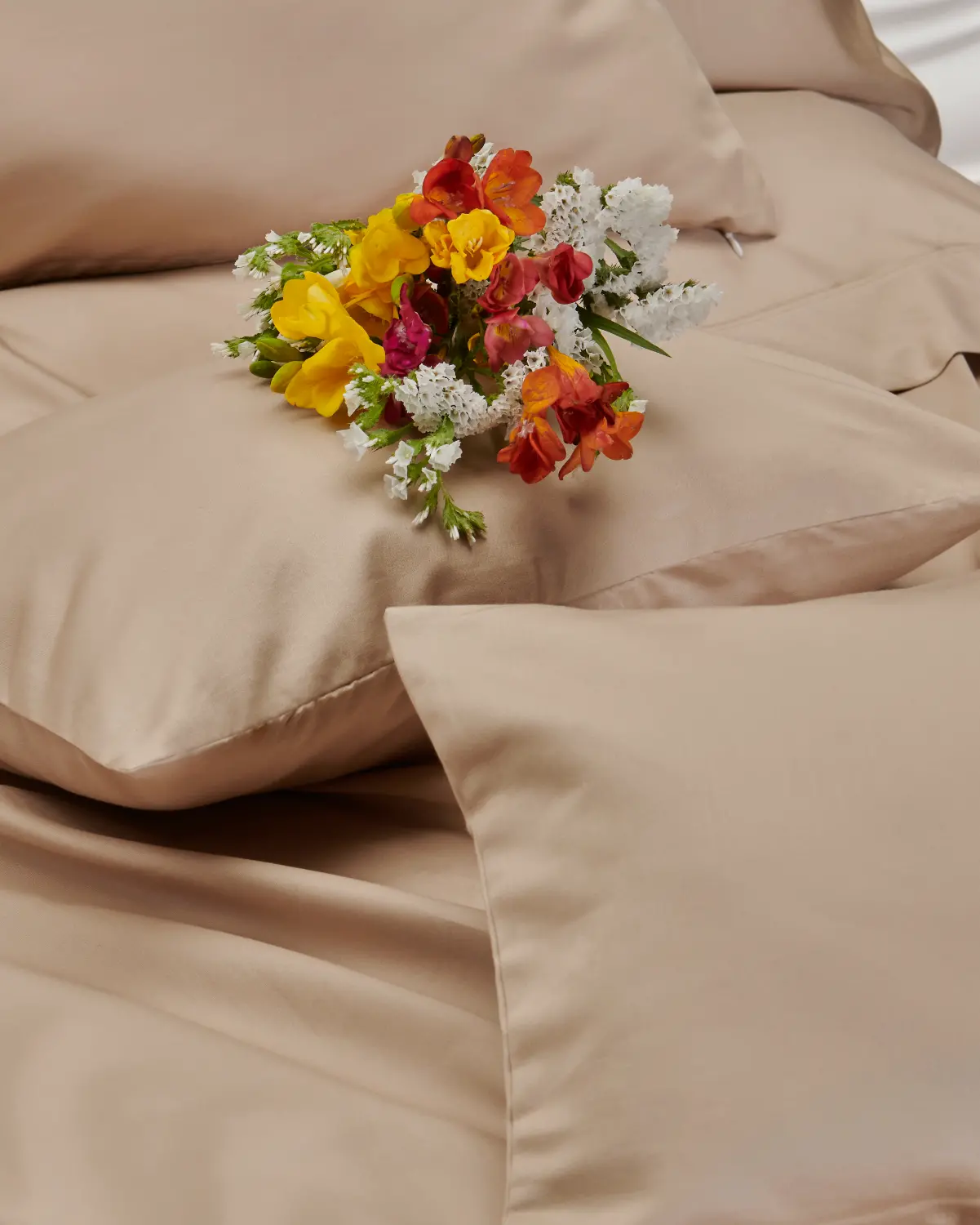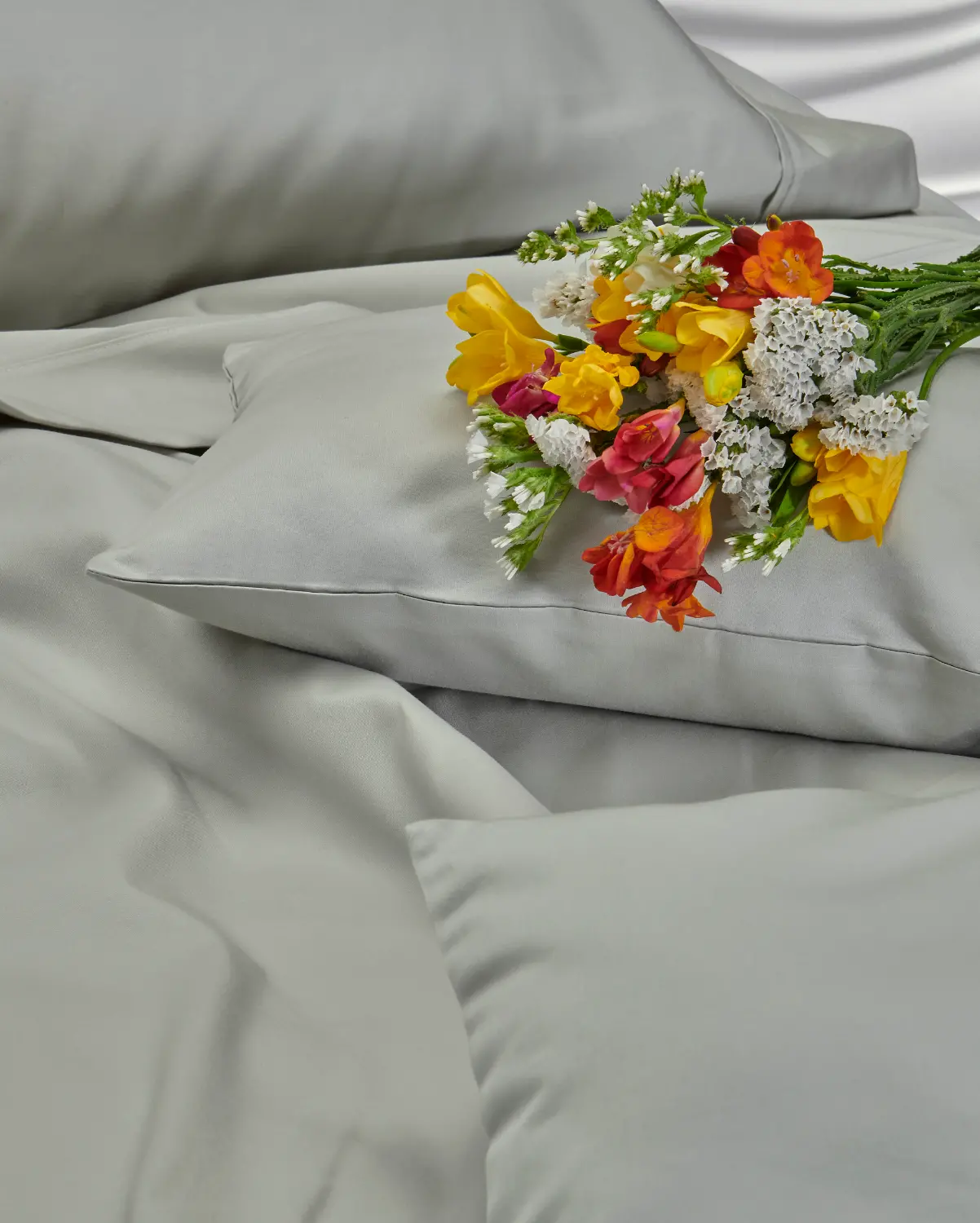 Tejido satén 100% algodón egipcio. Suavidad que envuelve. Caída elegante. Una forma nueva de sentir el descanso.