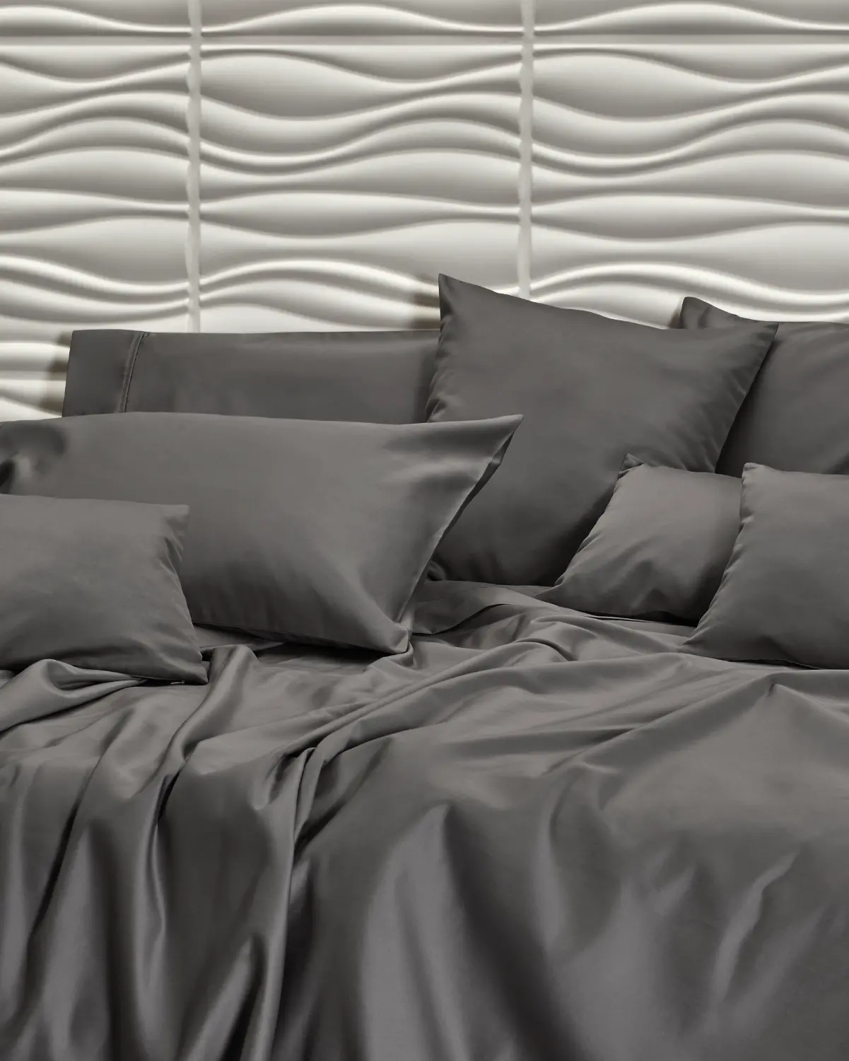 El gris profundo y elegante. Imponente, moderno, con presencia visual premium. Un fondo perfecto para el descanso.
